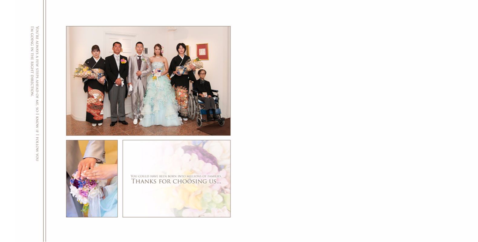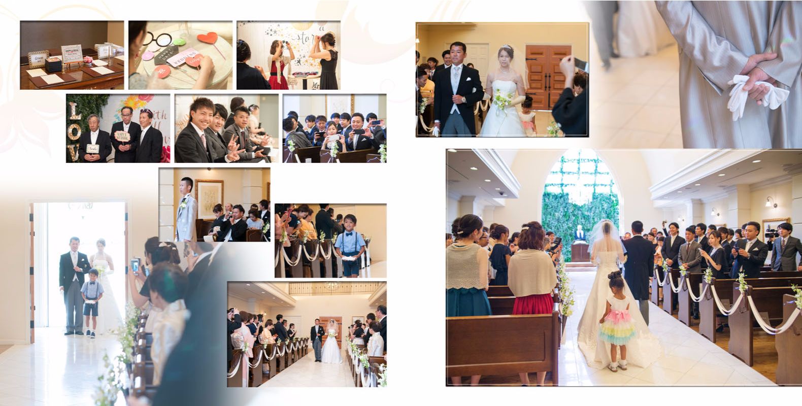 SQ ル・シャン・ド・ククで取り扱ってる一番大きいサイズのアルバム 1枚の写真を一面に大きく載せると迫力があって結婚式の事をより鮮明に思い出すこと間違いなし!! 薄くてページが丈夫なのも、このアルバムの売りです。 TOP アルバムの見た目 前撮りのおすすすめ お客様の声 1on1 weddingraph SQ SHINE EDGE WHITE DOOR precious